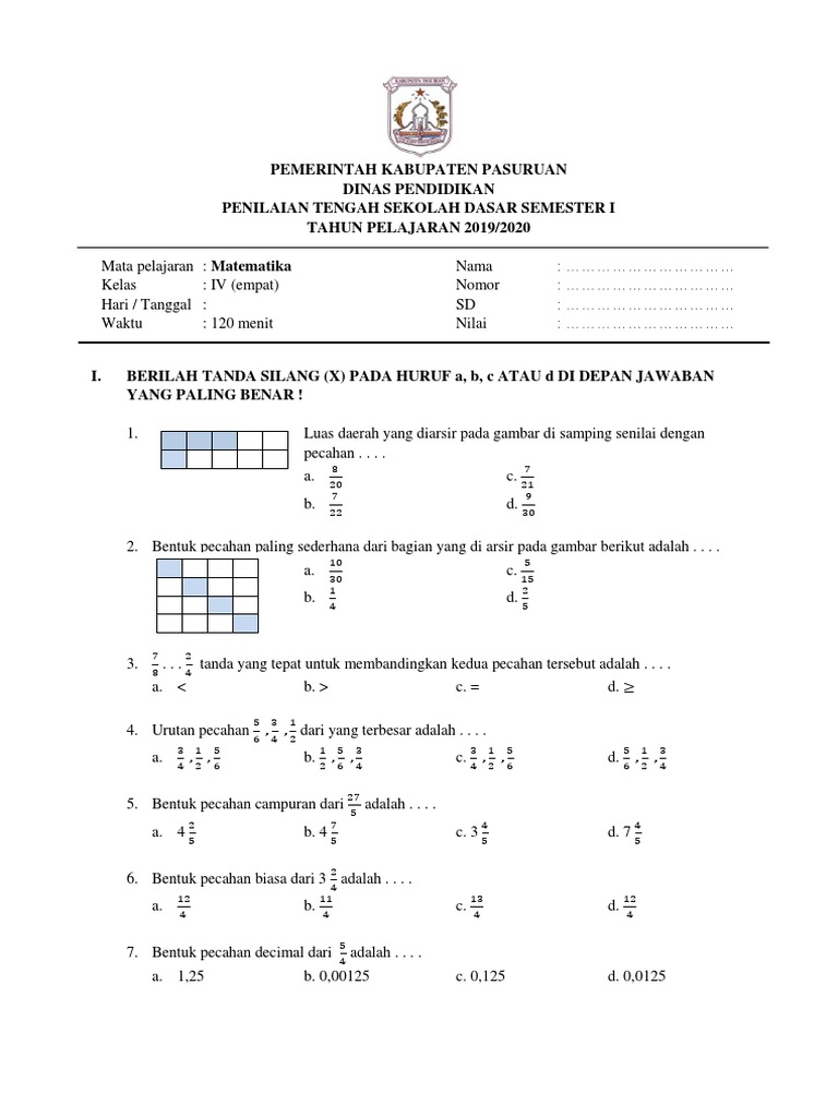 Doc Soal Pilihan Ganda Pg Uts Matematika Kelas 3 Semester 2 Genap Nirmala Sari Academia Edu