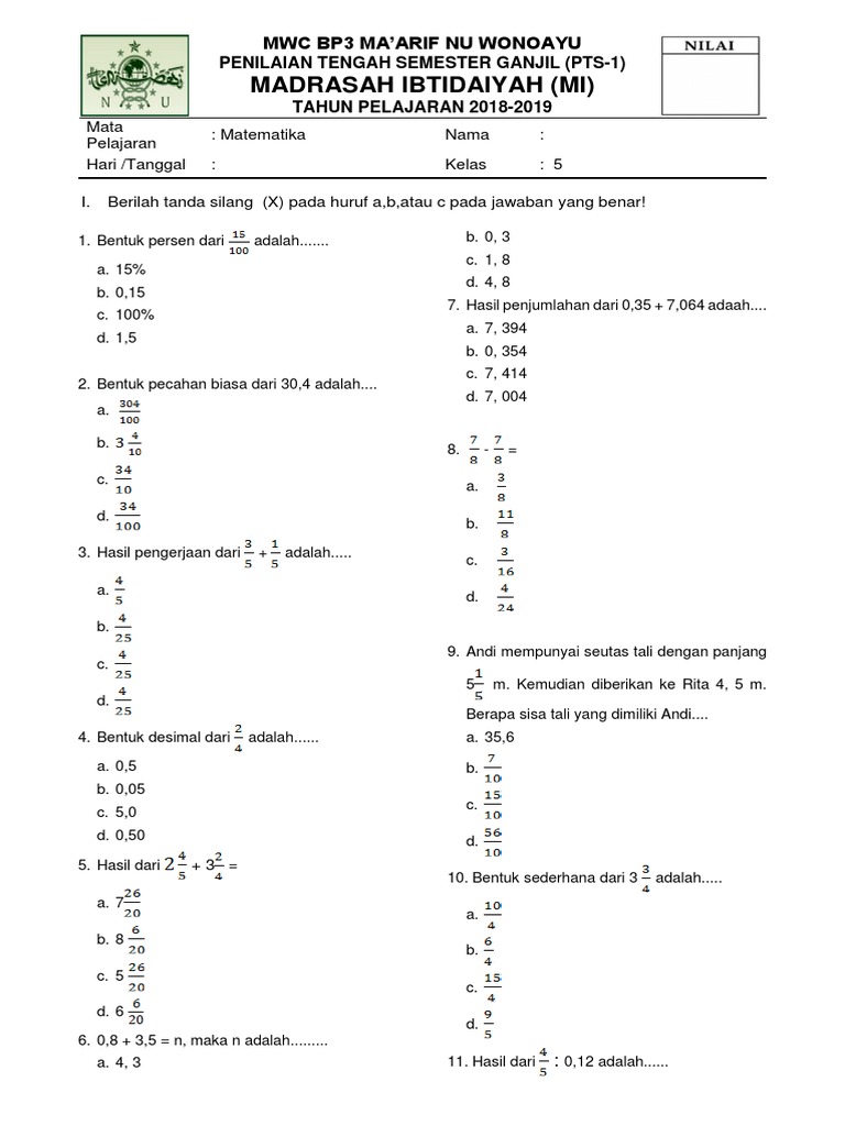Ubahlah Pecahan Desimal Berikut Menjadi Bentuk Persen A 0 5 B 0 07 C 0 65 D 0 033 E 1 8 Brainly Co Id