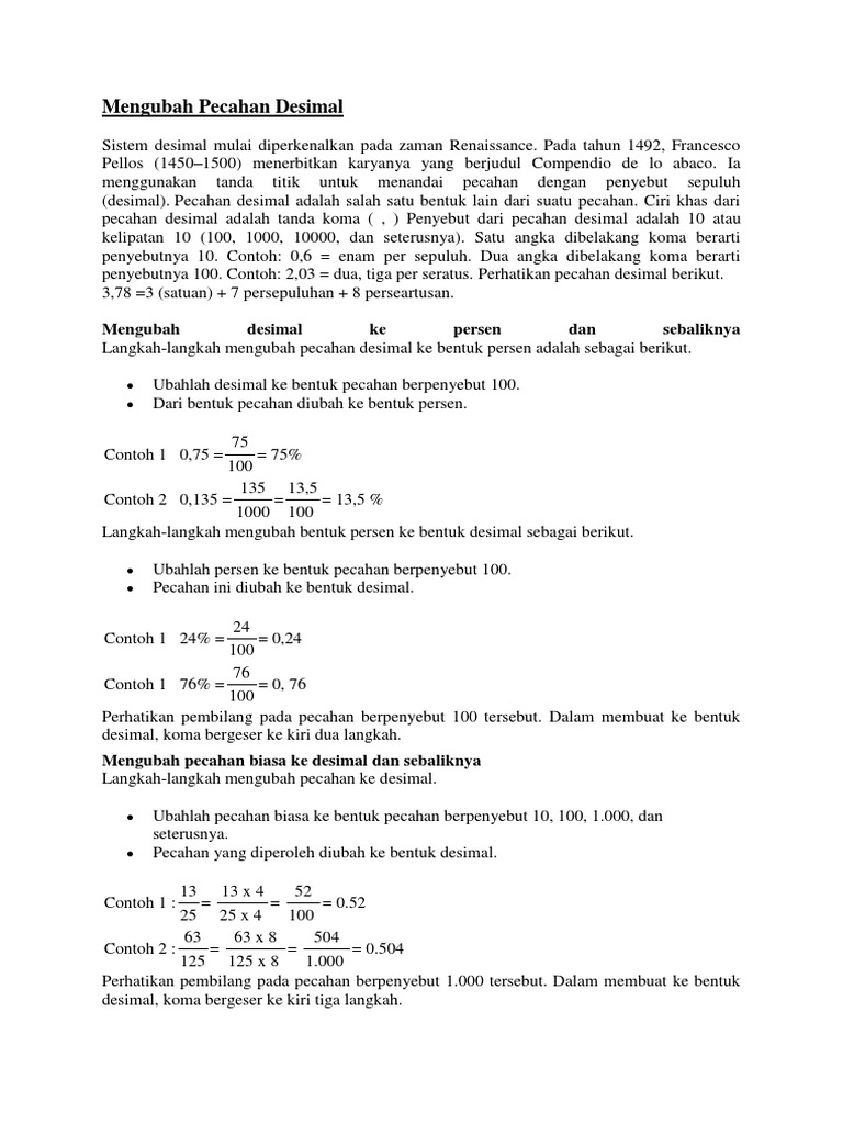 Cara Mengubah Bilangan Pecahan Biasa Ke Pecahan Desimal Dan Persen Ukuran Dan Satuan