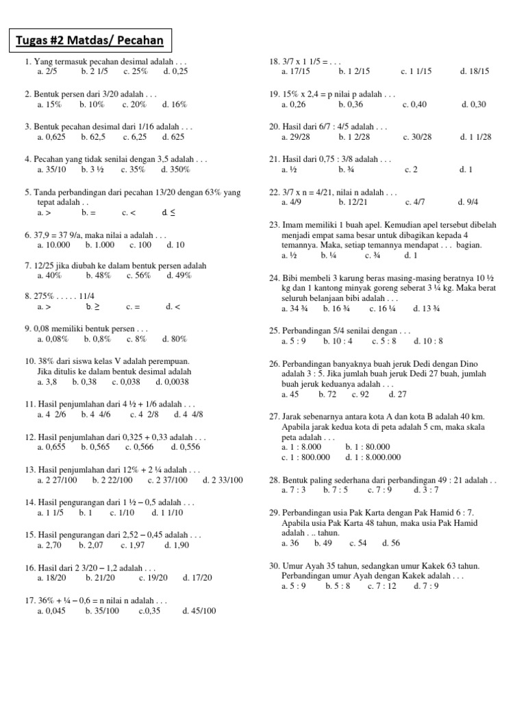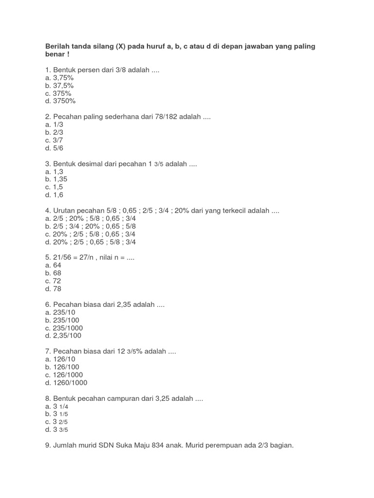 Operasi Hitung Pecahan Biasa Campuran Desimal Dan Persen Juragan Les