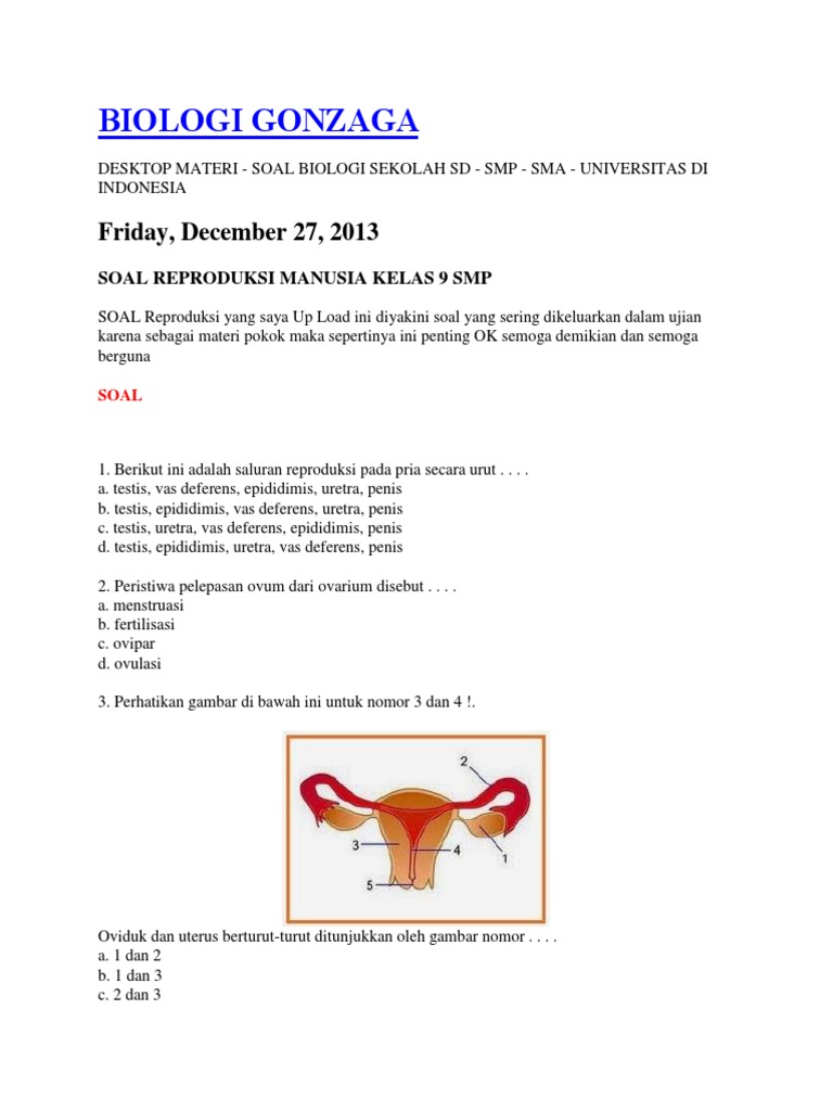 25 Soal Sistem Reproduksi Pilihan Ganda Dan Jawaban Pembahasan