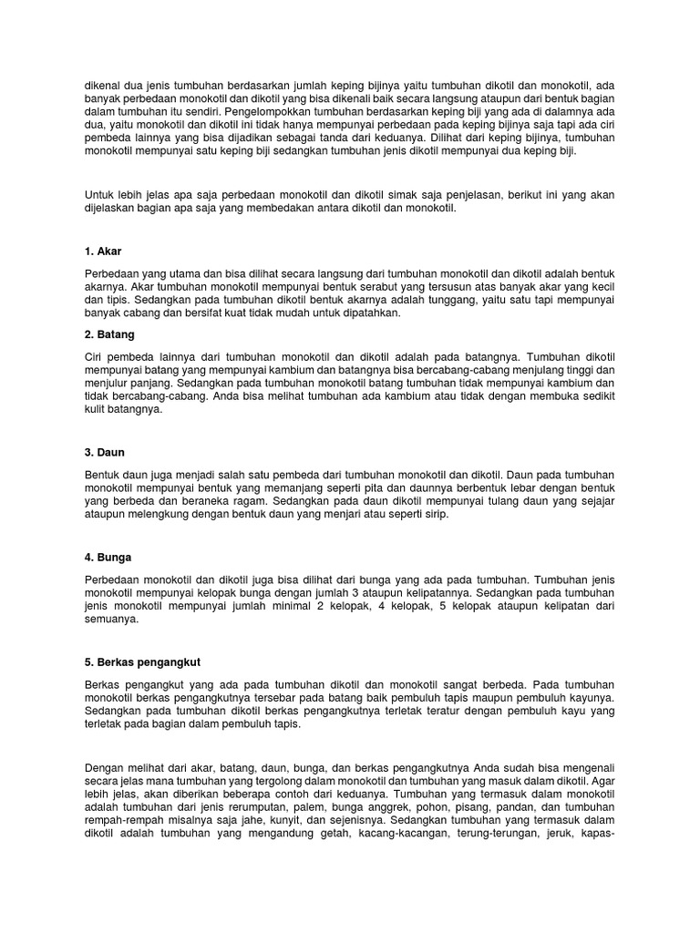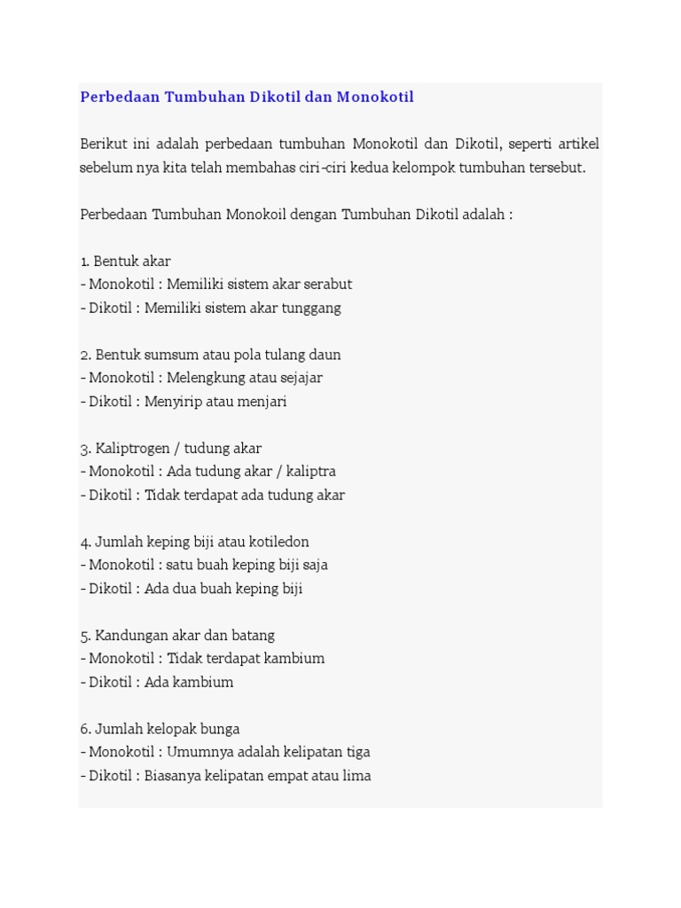 Tabel 7 Perbedaan Monokotil Dan Dikotil Serta Gambarnya Lengkap Ruangbiologi Co Id