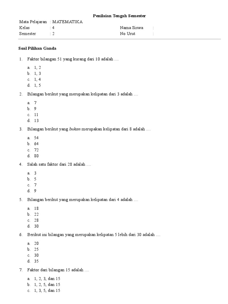 Kumpulan Materi Matematika Kelipatan Dan Faktor Kelas 4 Sd