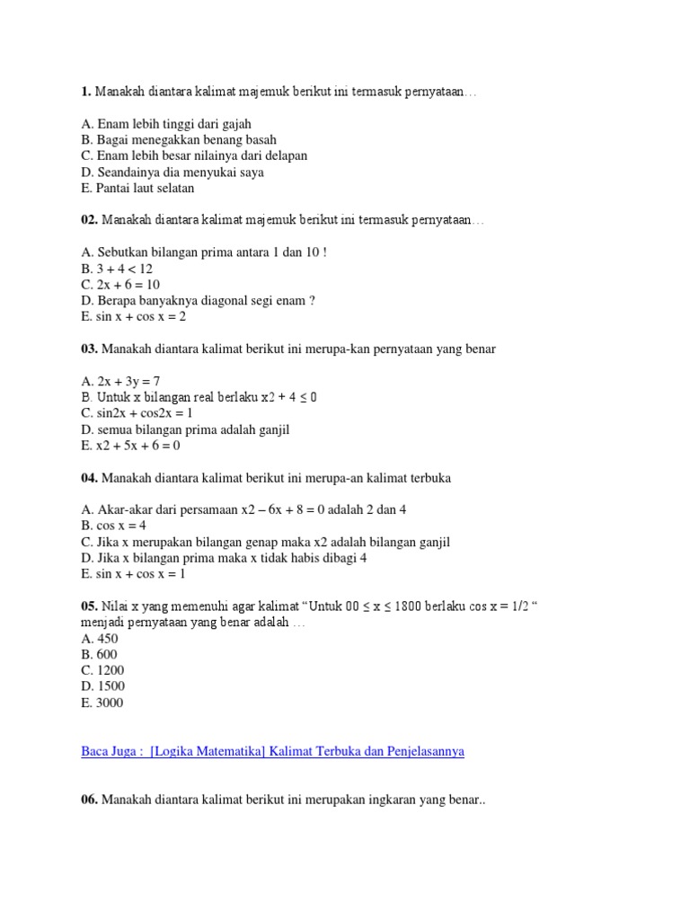 Kunci Jawaban Jika P Bilangan Prima Kurang Dari 12 Dan Q Bilangan Asli Kurang Dari 12 Pernyataan Berikut Yang Benar Adalah Rofa Education Centre