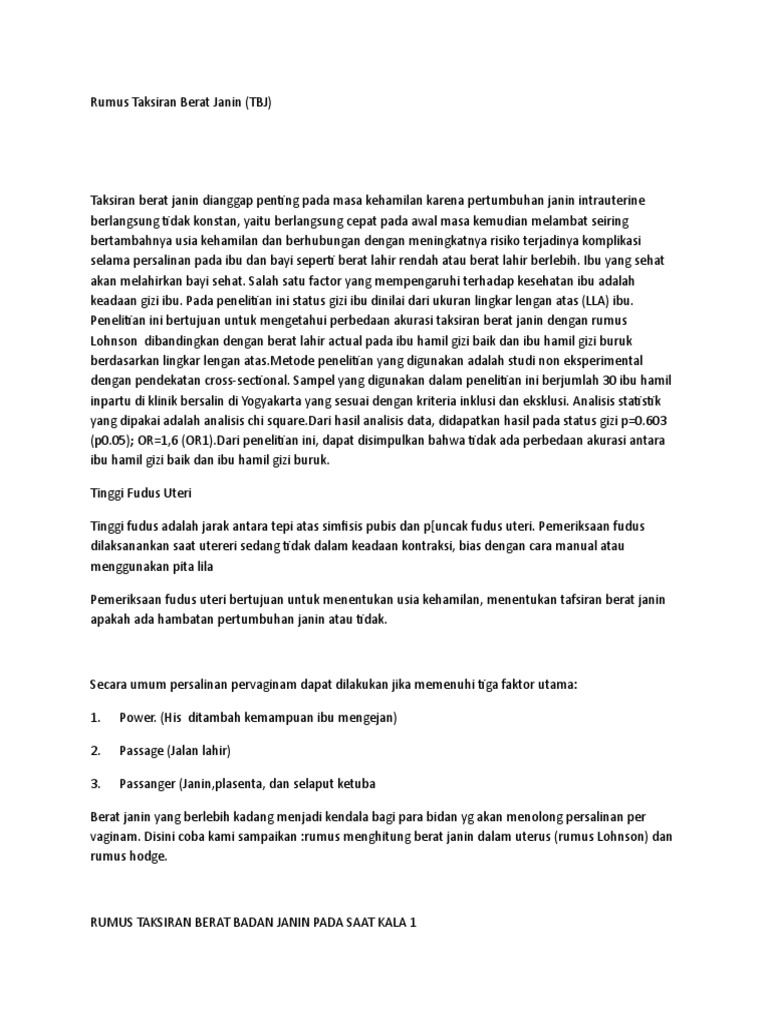Gambaran Ketepatan Prediksi Berat Badan Bayi Lahir Dengan Perhitungan Taksiran Berat Badan Janin Berdasarkan Posisi Pengukuran Tinggi Fundus Uteri Yang Berbeda Oksitosin Jurnal Ilmiah Kebidanan