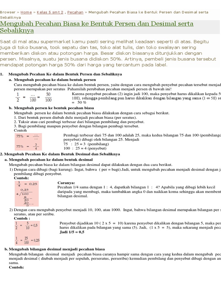 Cara Mengubah Pecahan Biasa Dan Pecahan Campuran Ke Pecahan Desimal Info Pelajaran