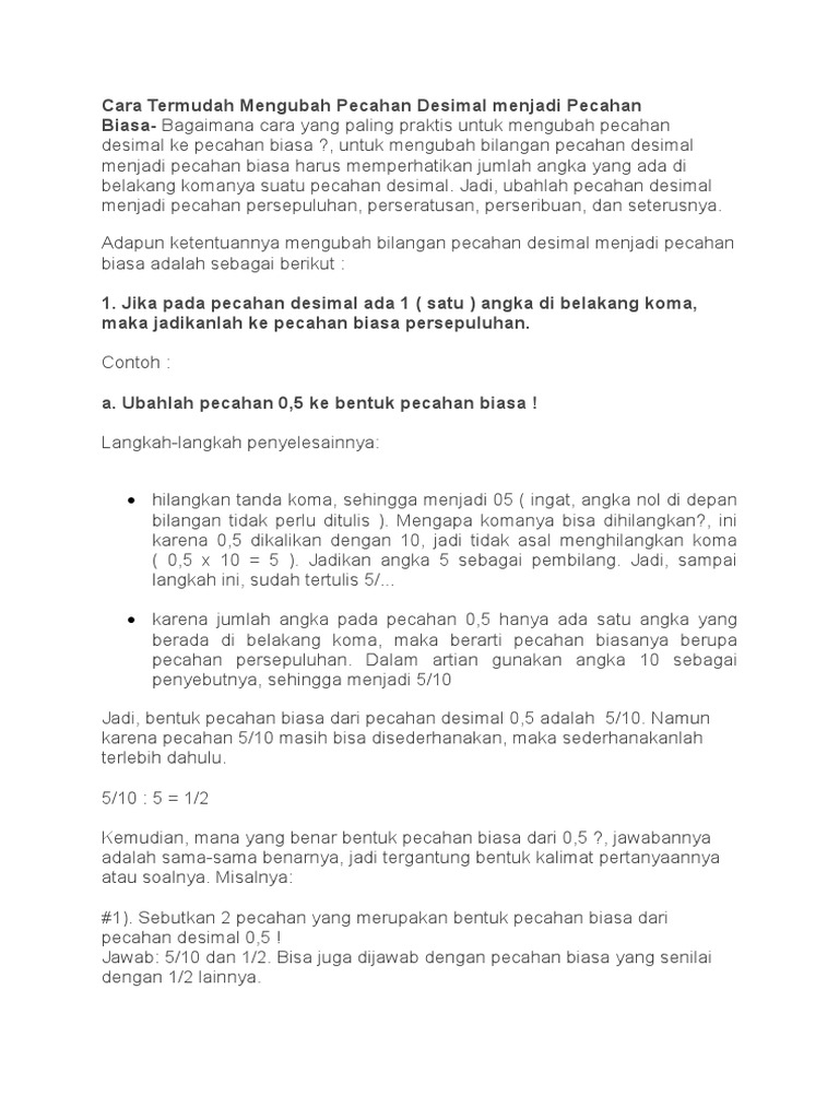 Cara Mengubah Bilangan Pecahan Biasa Ke Pecahan Desimal Dan Persen Ukuran Dan Satuan