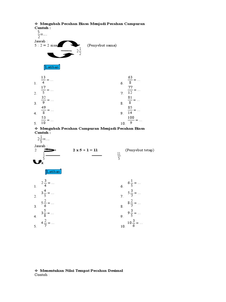 Rumus Pembagian Pecahan Campuran Biasa Desimal Contoh Soal