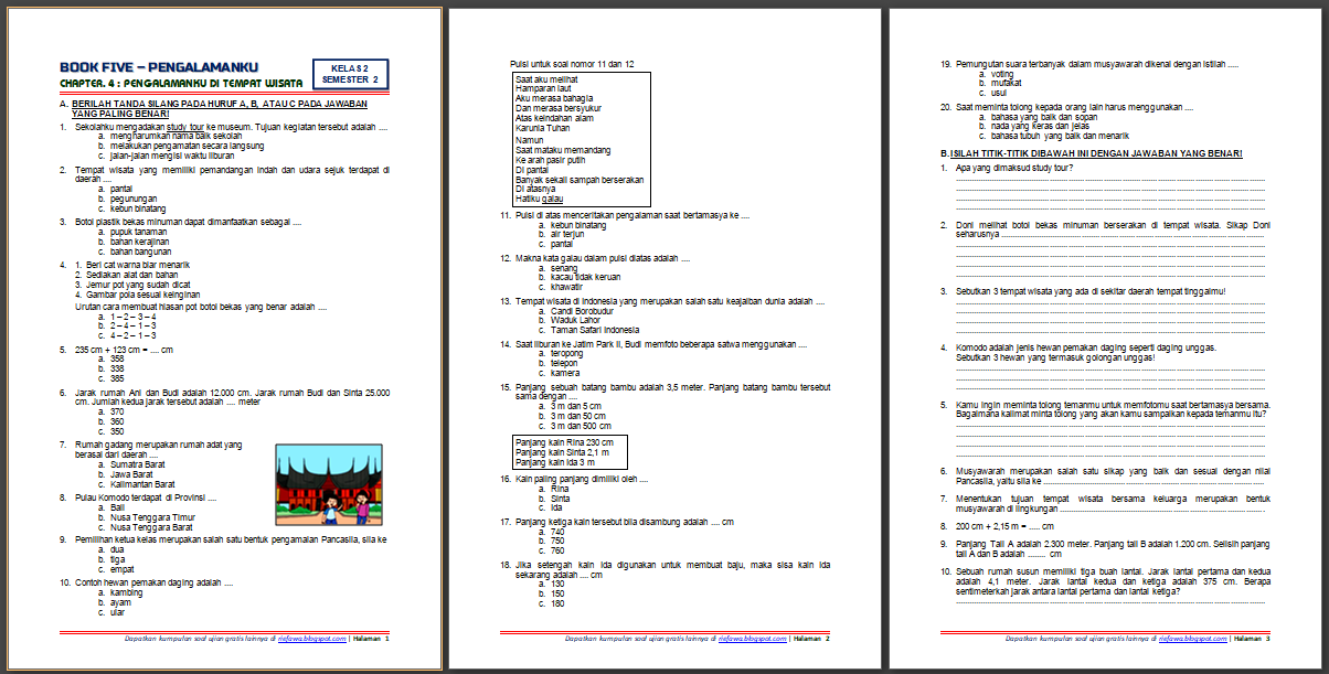 Soal Ulangan Harian Kelas 2 Tema 2 Sub Tema 4 Bermain Di Tempat Wisata Android Hijau