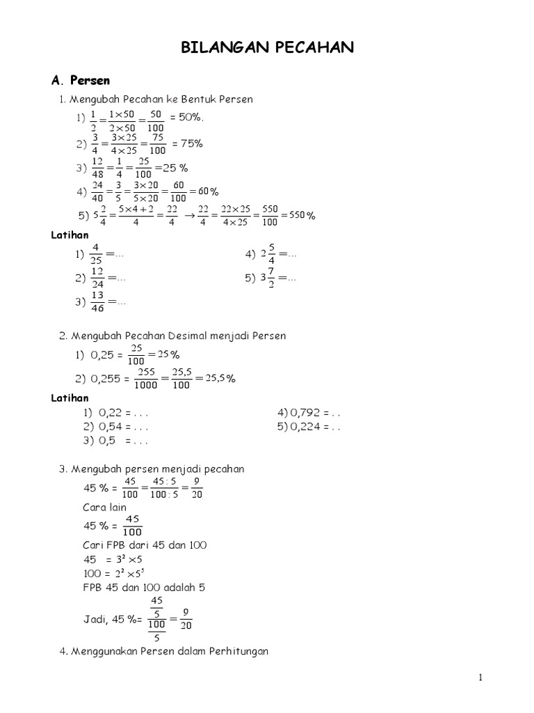Bagaimana Cara Cara Mengubah Persen Pecahan Dan Desimal