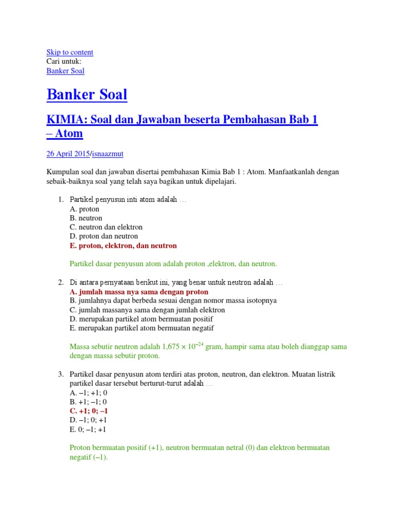 Jika Unsur A Mempunyai Jumlah Neutron 12 Dan B Mempunyai Jumlah Neutron 18 Pasangan Data Yang Brainly Co Id