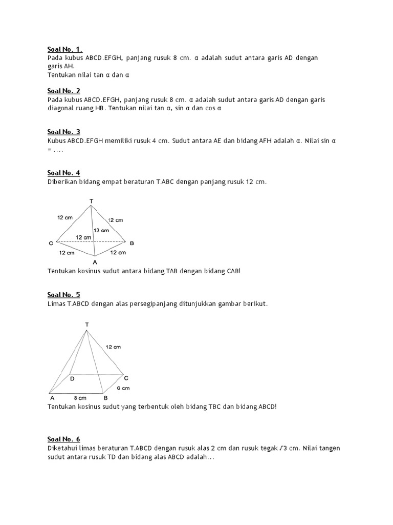 Limas Segi Empat Beraturan T Abcd Mempunyai Panjang Rusuk Alas 12 Cm Dan Tinggi 8 Cm Titik O Mas Dayat