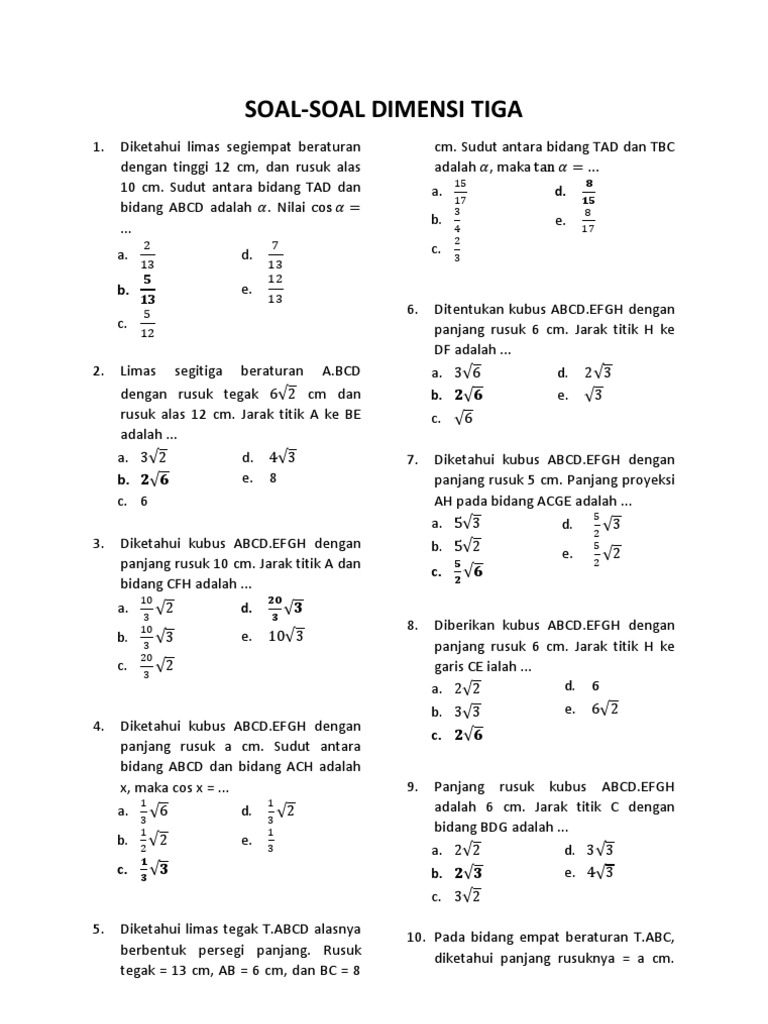 Prediksi Un Matematika 2018 Paket A Pembahasan No 31 Sudut Antara Dua Bidang Youtube