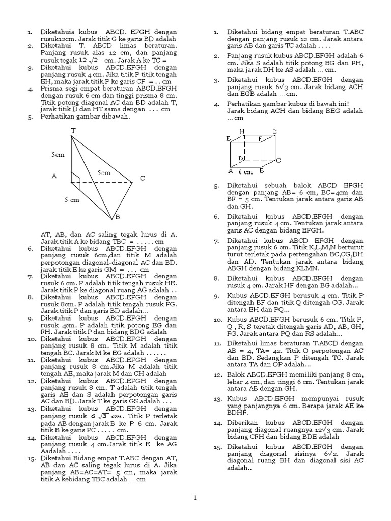 Diketahui Limas Segitiga Beraturan T Abc Dengan Ab 4 Cm Dan Ta 6 Cm Hitung Jarak Antara Rusuknya Youtube