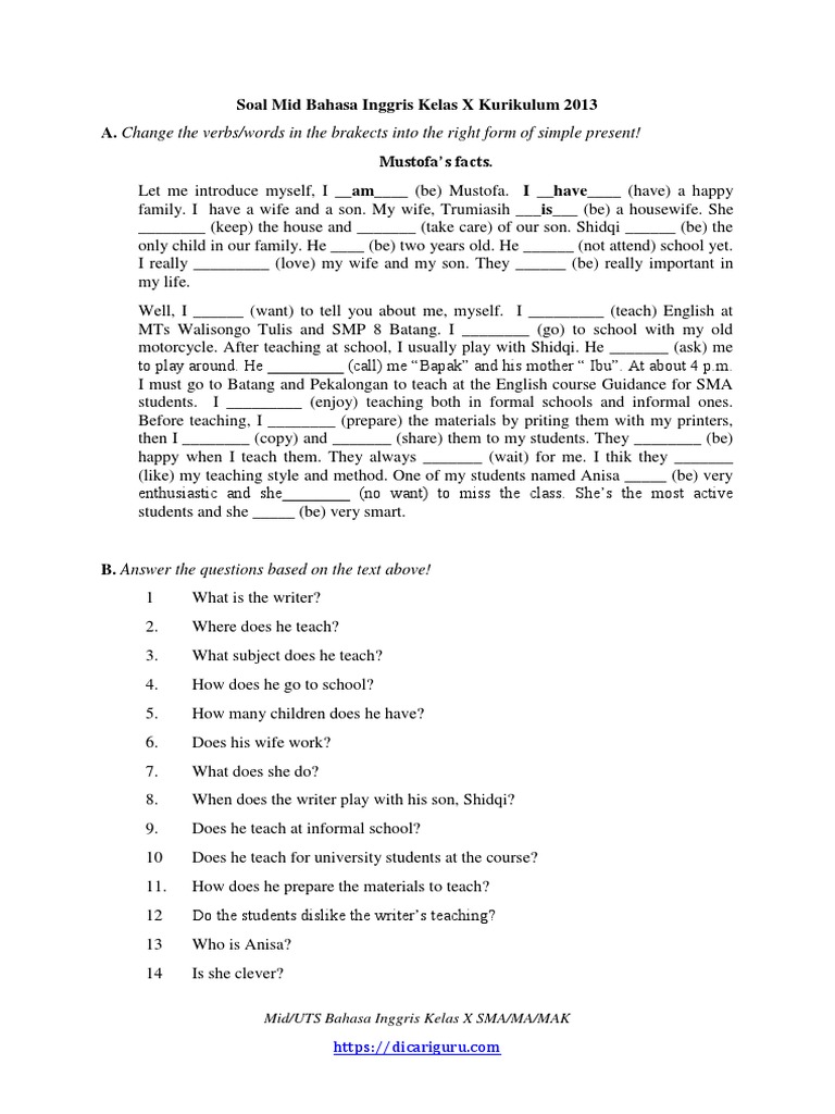 Contoh Soal Dan Materi Pelajaran 5 Contoh Soal Ujian Tengah Semester Kelas 1 Sd Bahasa Inggris