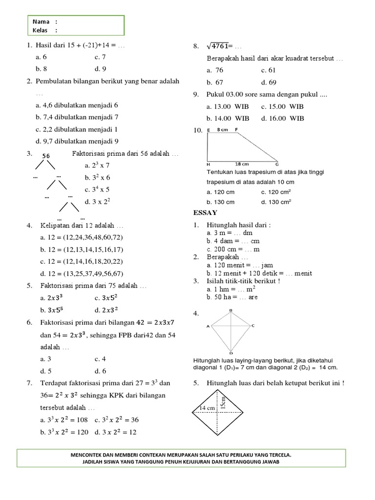 Menentukan Kelipatan Persekutuan Terkecil Kpk Dan Faktor Persekutuan Terbesar Fpb Dengan Metode Ebik Pdf Free Download