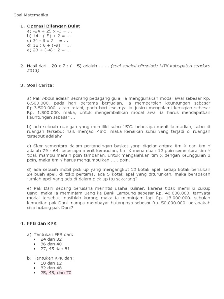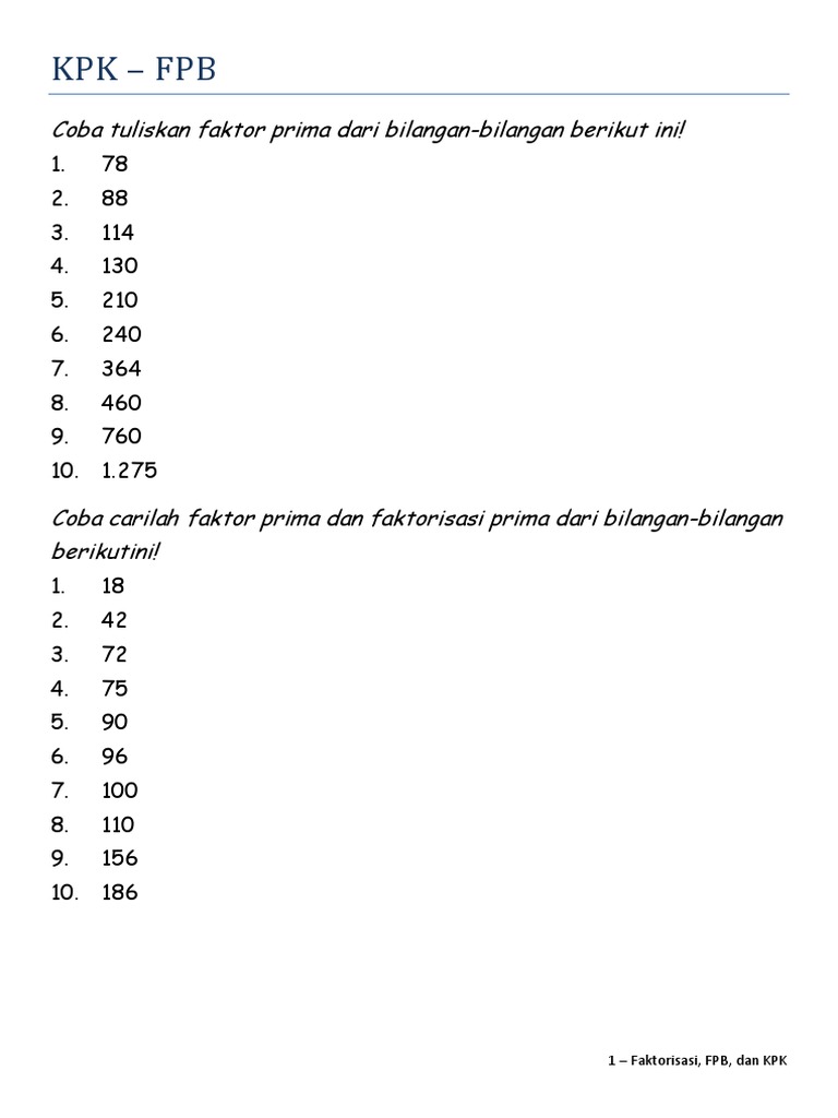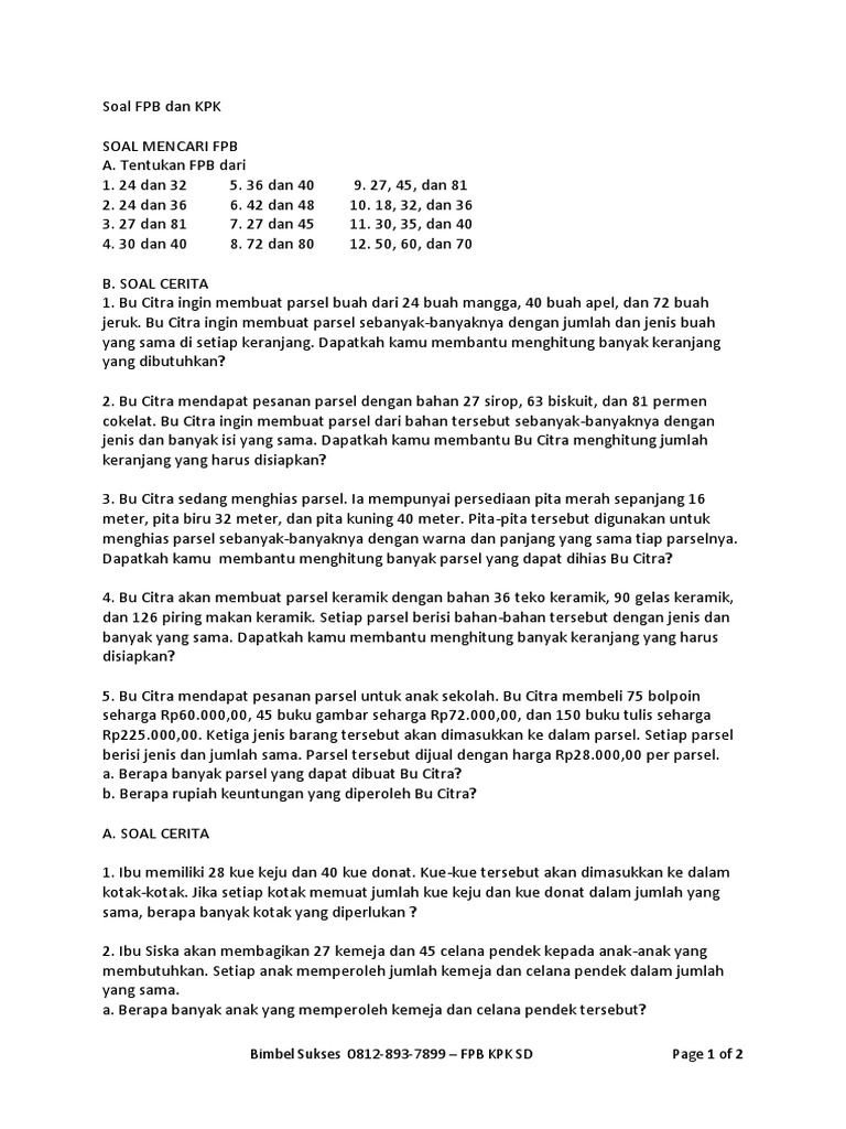 Antiremed Kelas 7 Matematika Tentukan Kpk Dan Fpb Dari Dua Bilangan Di Bawah 81 Dan 27 04 Dalam Pdf Document