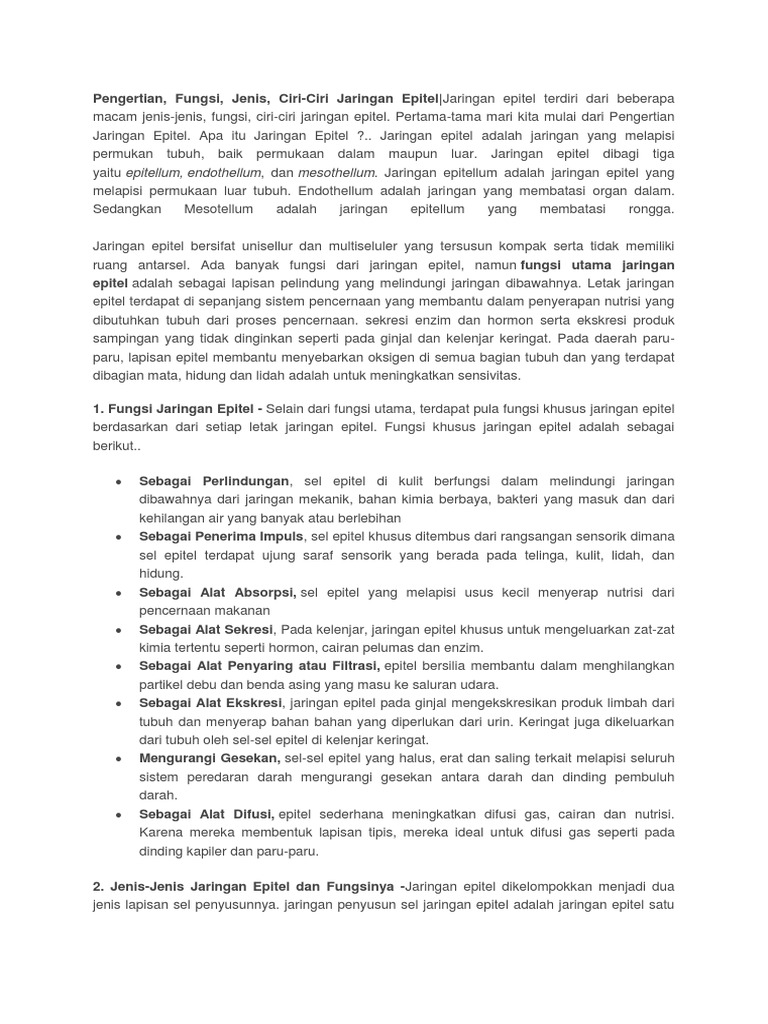 Jaringan Epitel Ciri Ciri Fungsi Jenis Dan Modifikasinya Jenis Net