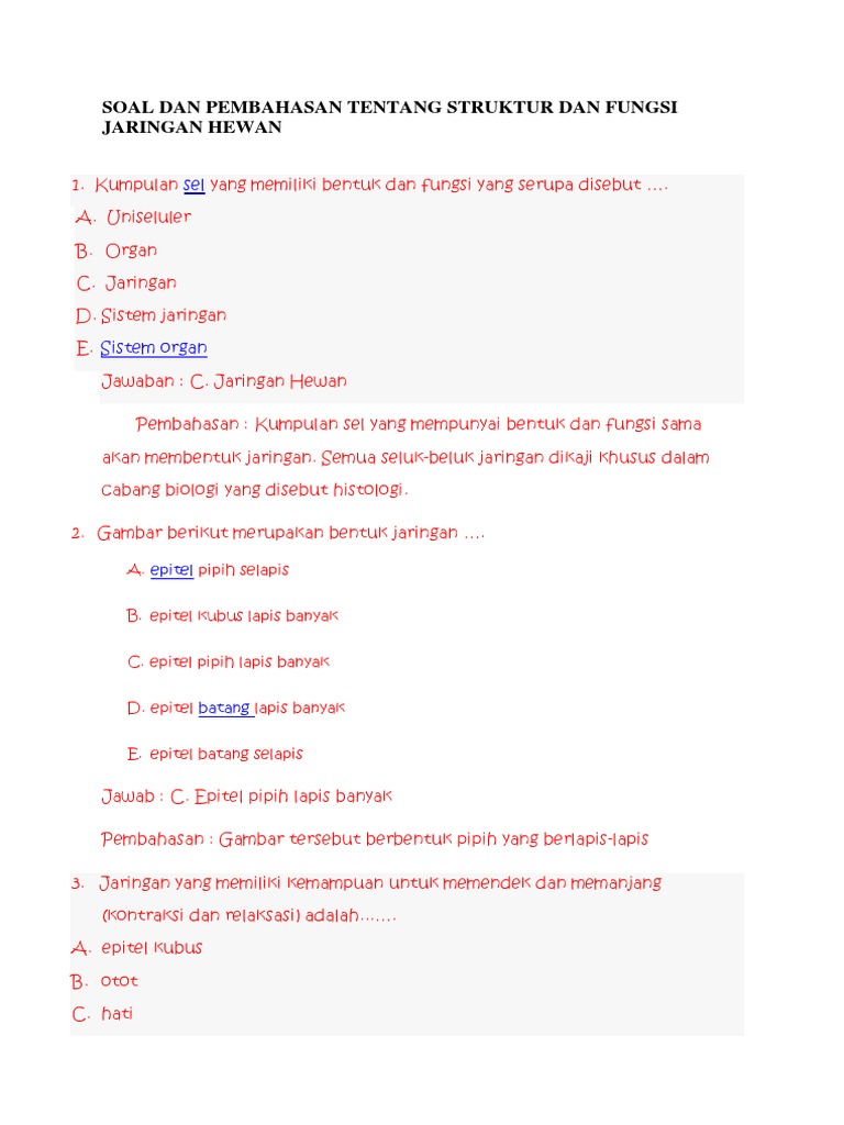 Biologi Gonzaga Tugas Soal Jaringan Hewan Dan Tumbuhan