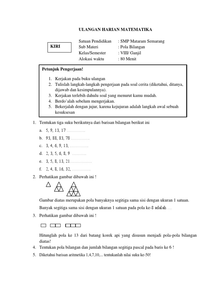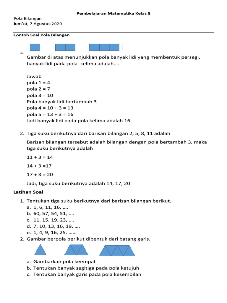 Pola bilangan segitiga adalah suatu barisan pada bilangan yang membentuk sebuah gambar pola segitiga. Gambar pola bilangan ganjil. Dibawah ini beberapa contoh soal dan pembahasannya yang dapat kamu pelajari.