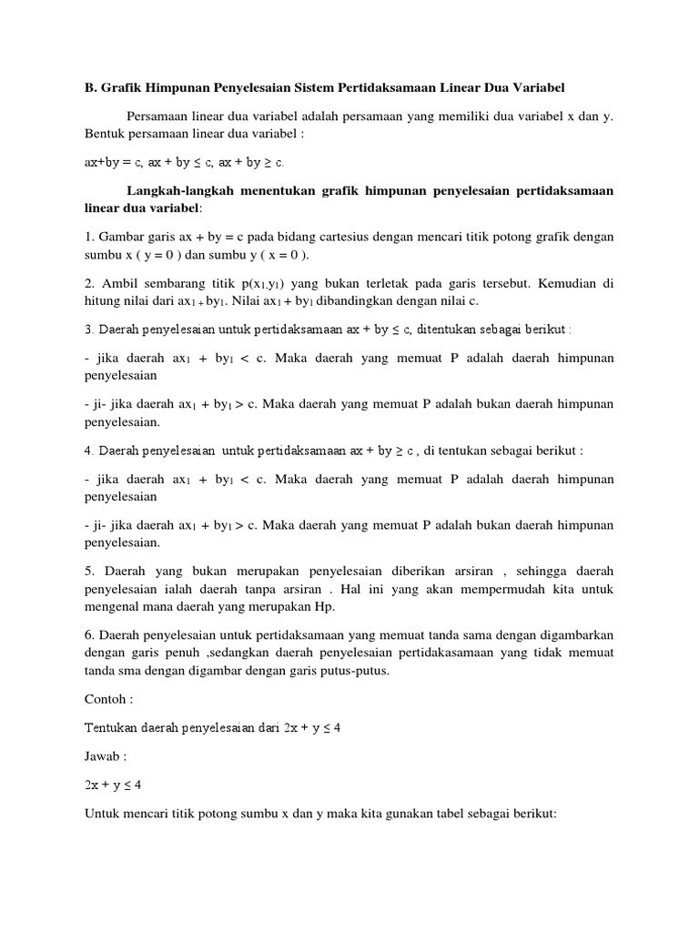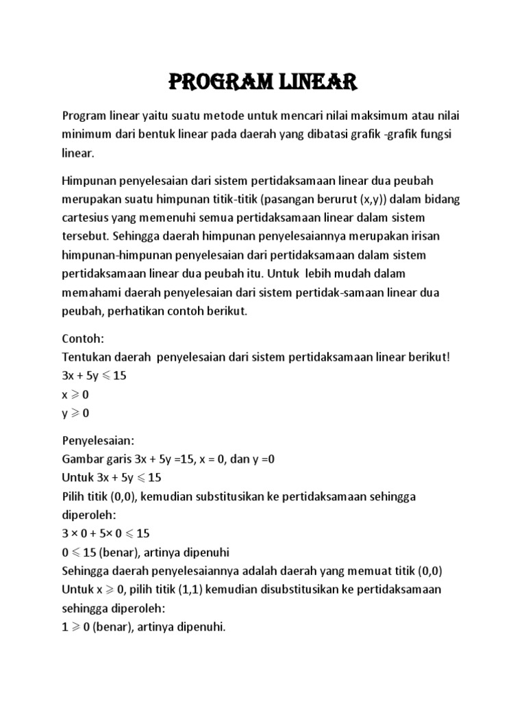 Program Linear Sistem Pertidaksamaan Linear Dua Variabel Contoh Soal Rumus Cara Menyelesaikan Model Matematika Pembahasan Praktikum
