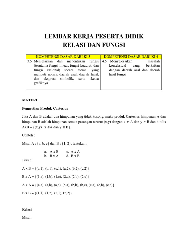 Relasi Dan Fungsi 2 Ppt Produk Cartesius Relasi Relasi Khusus Relasi Jika A Dan B Masing Masing Menyatkan Himpunan Yang Tidak Kosong Maka Produk Course Hero