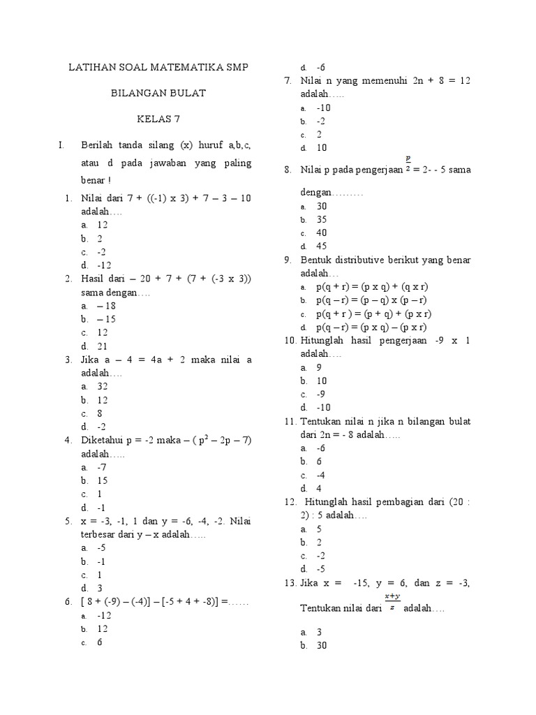 1 Latihan Soal Matematika Bilangan Bulat id.scribd.com