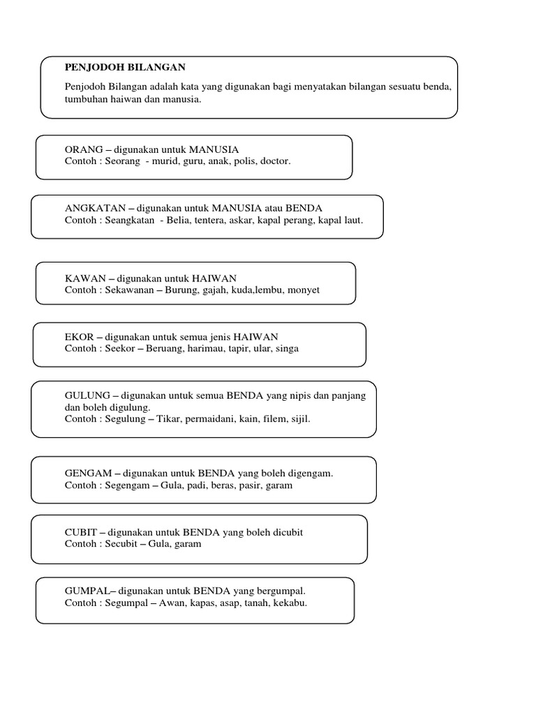 Nota Bahasa Melayu Sekolah Rendah Nota Penjodoh Bilangan
