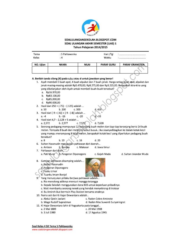 Soal Uh Kelas 4 Tema 5 Subtema Pahlawanku Bank Soal Hamasahprivat Com