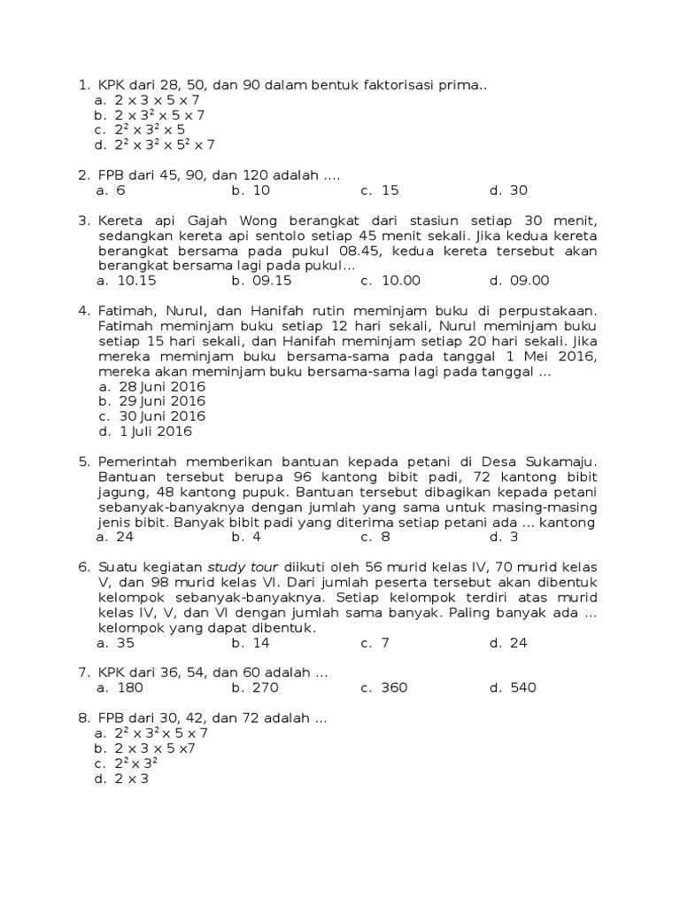 Tentukan Faktor Persekutuan Terbesar Fpb Dari 36 54 Dan 60 Dalam Bentuk Faktorisasi Prima Brainly Co Id