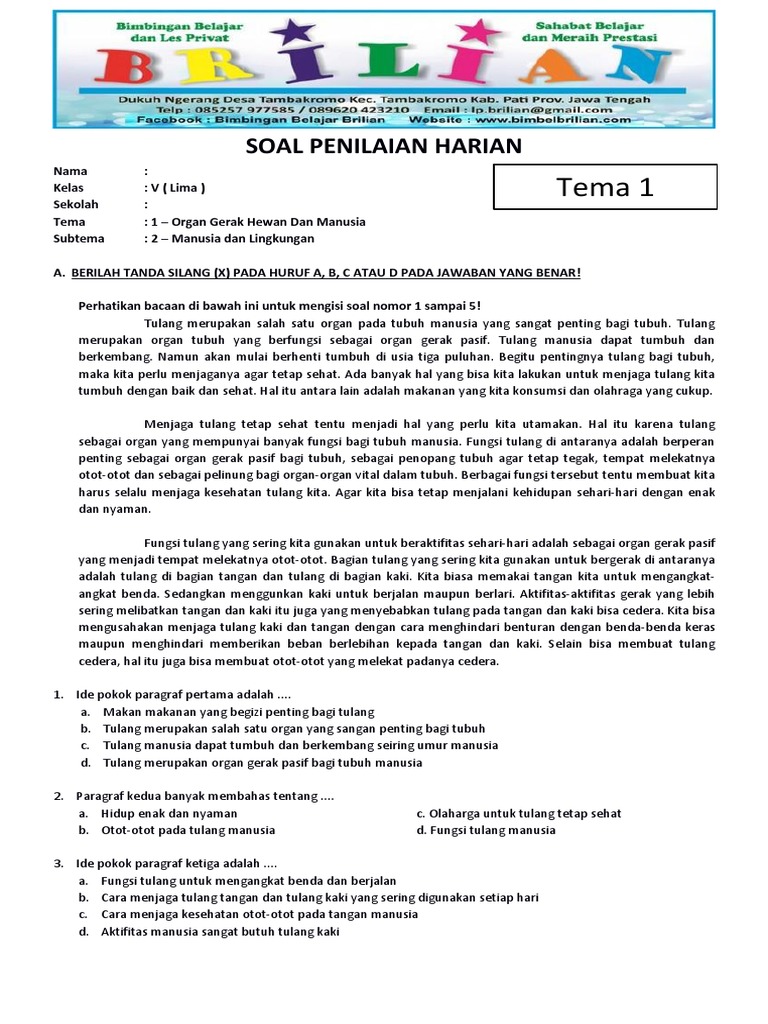 Soal Tematik Kelas 4 Sd Tema 1 Subtema 2 Kebersamaan Dalam Keberagaman Dan Kunci Jawaban Bimbel Brilian