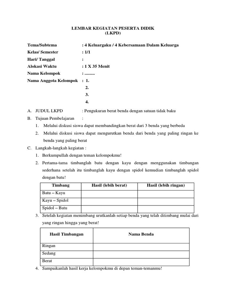 Format Dan Contoh Lkpd Kurikulum 2013 Dasarguru