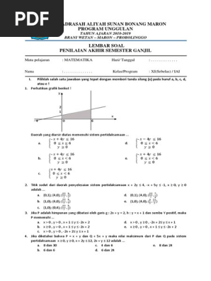 122281 Penilaian Harian Docx Penilaian Harian 1 Grafik Himpunan Penyelesaian 2x 5y U2264 4 Ditunjukkan Oleh U2026 A B C D E 2 Daerah Yang Diarsir Merupakan Course Hero