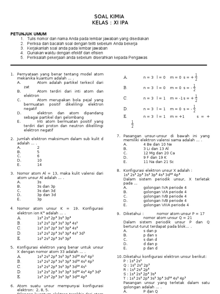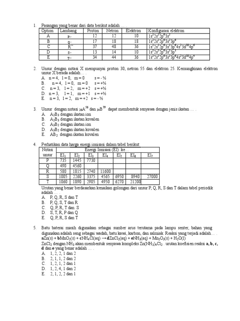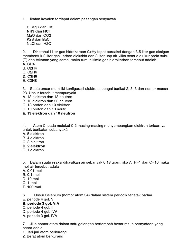 Doc Soal Soal Tentang Ikatan Kimia Dan Jawabannya Mey Lingga Academia Edu
