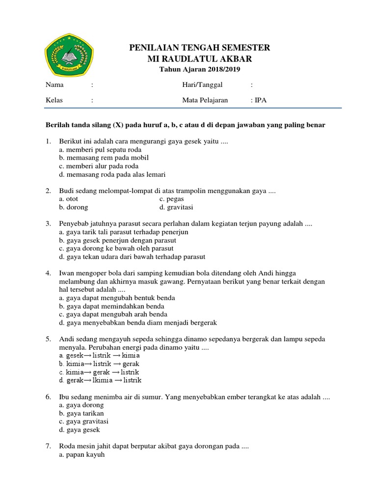 Doc A Berilah Tanda Silang X Pada Soal Berikut Yang Dianggap Benar Linda Andriani Academia Edu
