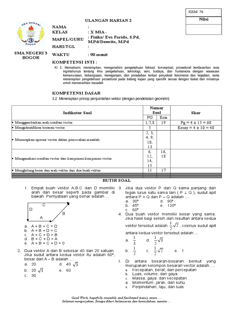 Latihan Soal Dan Pembahasan Vektor Materi Fisika Kelas 10 Fisika