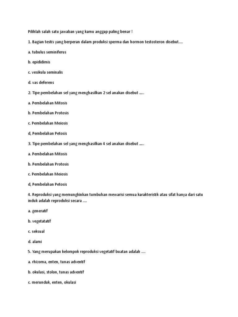 25 Soal Pembelahan Sel Pilihan Ganda Dan Jawaban Pembahasan