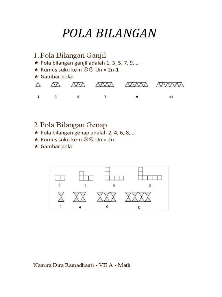 Pola adalah bentuk atau model yang memiliki keteraturan baik dalam desain maupun gagasan abstrak. Gambar pola bilangan ganjil. N maka rumus dari pola bilangan ganjil ke n adalah sebagai berikut.