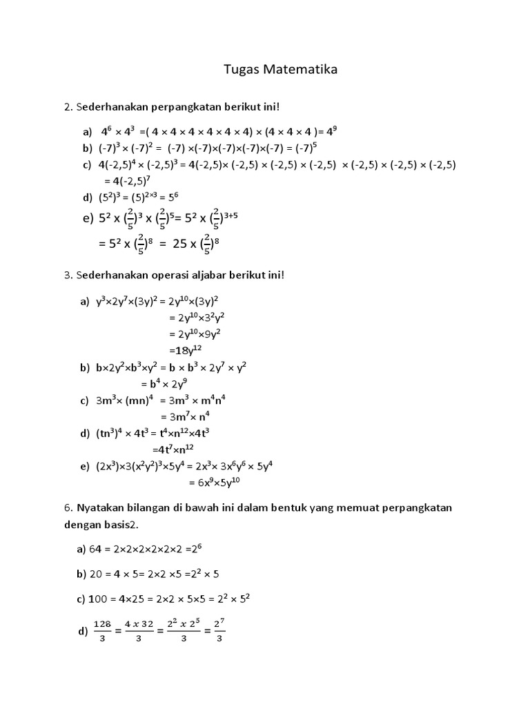 Sederhanakan Operasi Perpangkatan Aljabar Berikut Ini A Y 3 3y 2 B Tex Sqrt B Brainly Co Id