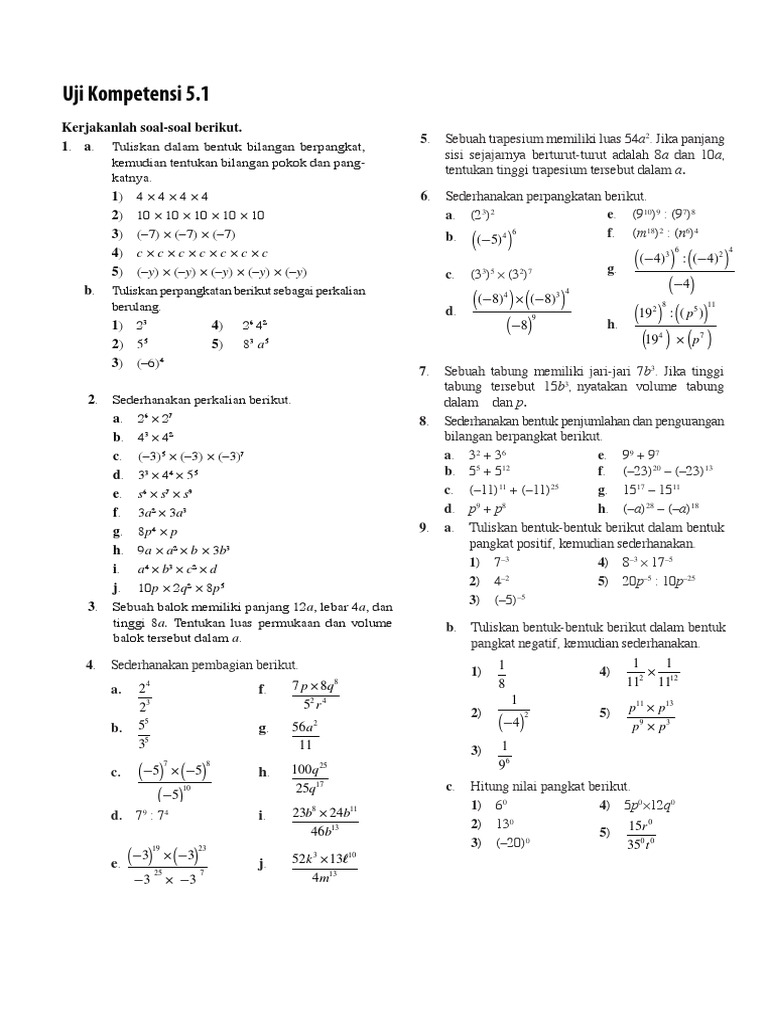 Lengkap Kunci Jawaban Buku Paket Matematika Latihan 1 2 Perkalian Pada Perpangkatan Halaman 20 21 22 Kelas 9 Kurikulum 2013 Jawaban Buku Paket