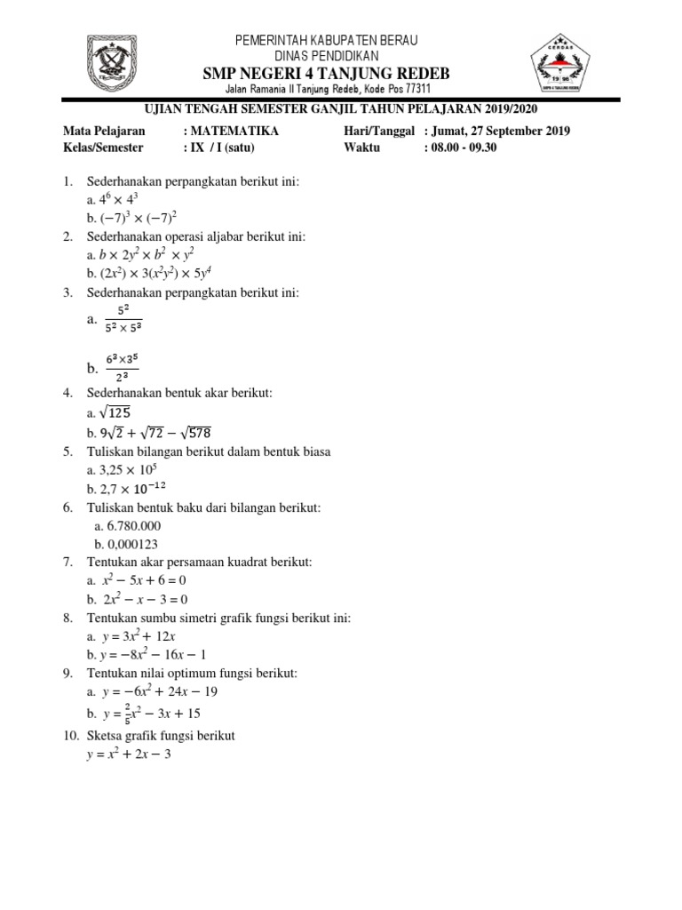 Contoh Soal Dan Jawaban Bilangan Berpangkat Kelas 9 Guru Ilmu Sosial
