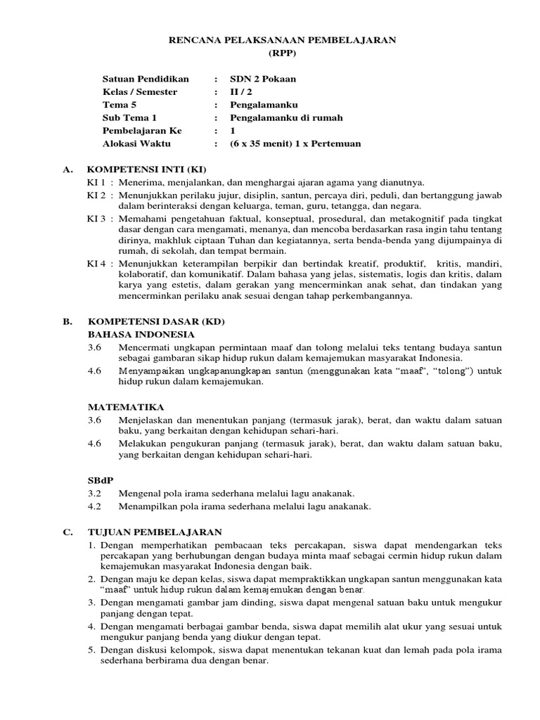 Buku Bse Kelas 02 Sd Tematik 5 Pengalamanku Guru 2017