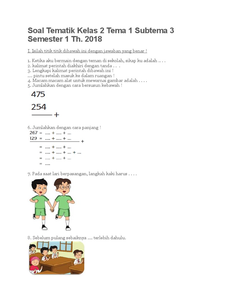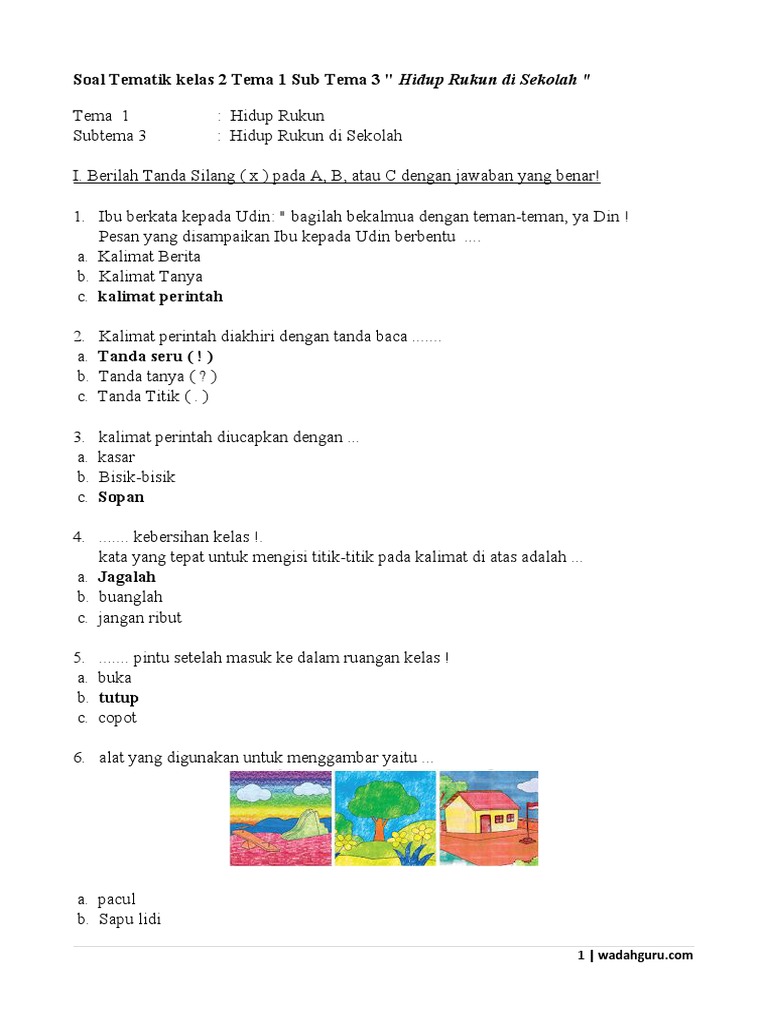 Soal Tematik Kelas 2 Sd Tema 1 Subtema 3 Hidup Rukun Di Sekolah Dan Kunci Jawaban Bimbel Brilian