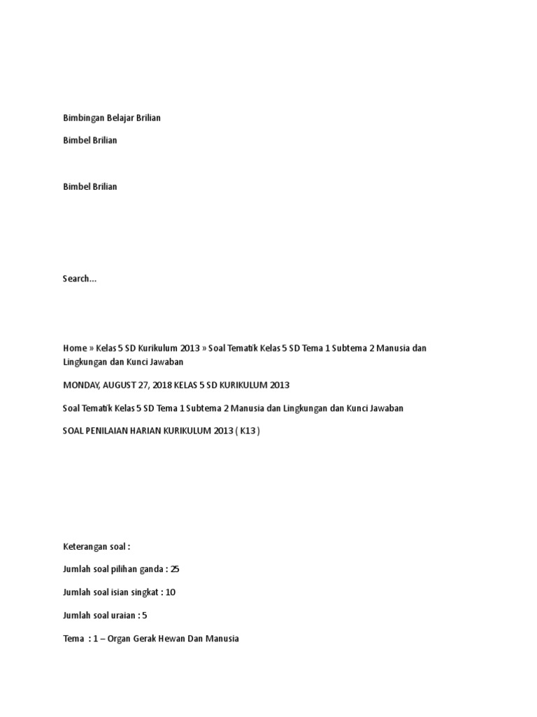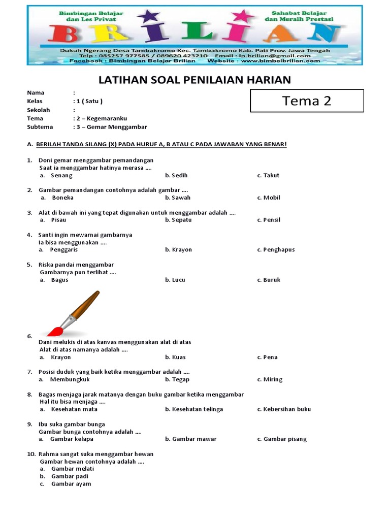 Kumpulan Soal Tematik Kelas 1 Sd Tema 1 Subtema 1 2 3 Dan 4 Dilengkapi Kunci Jawaban Bimbel Brilian