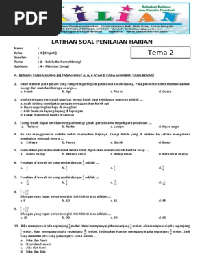Soal Ulangan Harian Tematik Kelas 4 Empat Sd Mi Tema 2 Subtema 2 Manfaat Energi Ahzaa Net