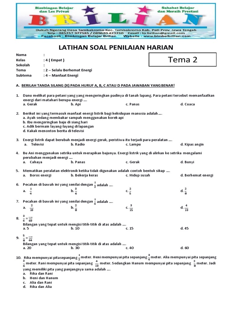 Soal tema 2 kelas 4 download kisi kisi soal tematik subtema manfaat energi hallo adik adik semua pada kesempatan yang berbahagia kali ini kita akan membahas soal tentang kelas 4 sd dengan tema. Selalu berhemat energi dengan subtemanya yaitu. Atau sebagai sumber referensi membuat soal.