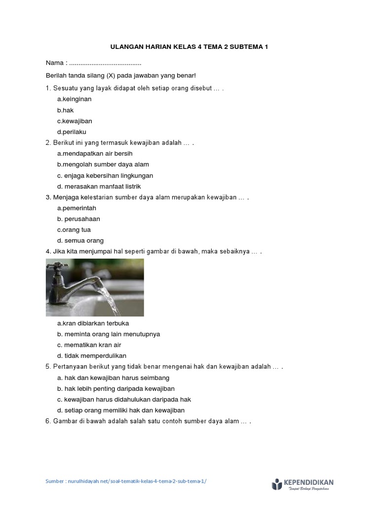 Latihan Soal Tematik Kelas 4 Tema 2 Selalu Berhemat Energi Teori Dan Soal