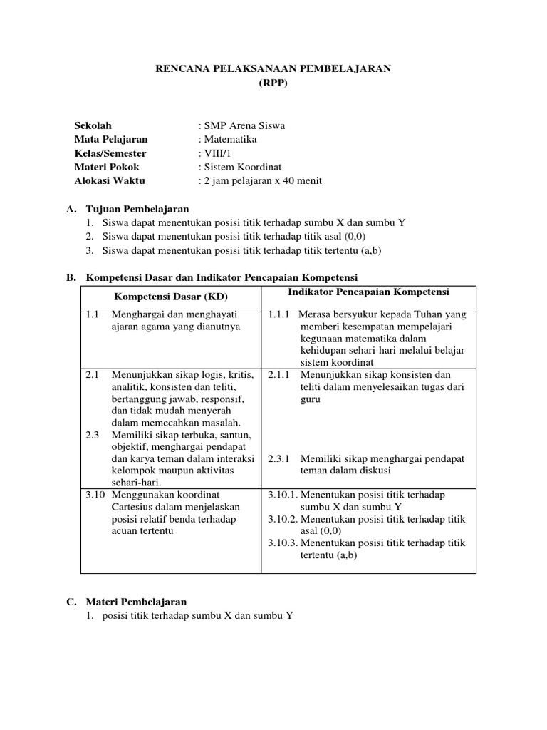Rpp 1 Lembar Matematika Kelas 8 Semester 1 2 K13 Revisi 2020 Kherysuryawan Id