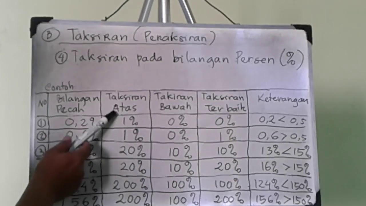 Hitunglah taksiran dari 67. Taksiran rendah. Taksiran persen adalah menaksir hasil operasi hitung dengan cara membulatkan semua suku yang ada sesuai dengan acuan bilangan persen.